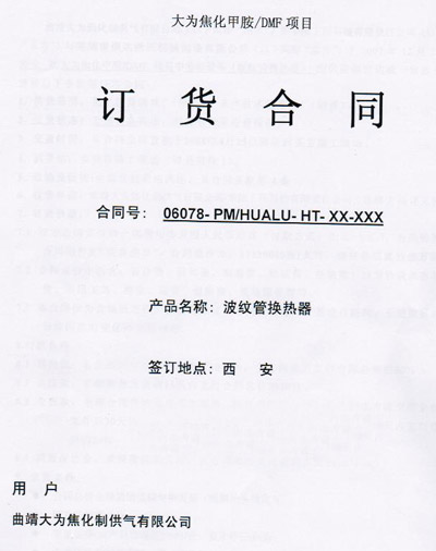 華陸工程科技有限責(zé)任公司向我司采購波紋管換熱器用于曲靖大為焦化制供氣有限公司。具體設(shè)備包括:T-711塔冷凝器;T-721塔冷凝器;T-731塔冷凝器;T-741塔冷凝器;T-751塔冷凝器;T-811塔冷凝器;T-821塔冷凝器